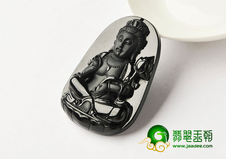 首页 >> 细糯种墨翠缅甸翡翠A货观音挂件