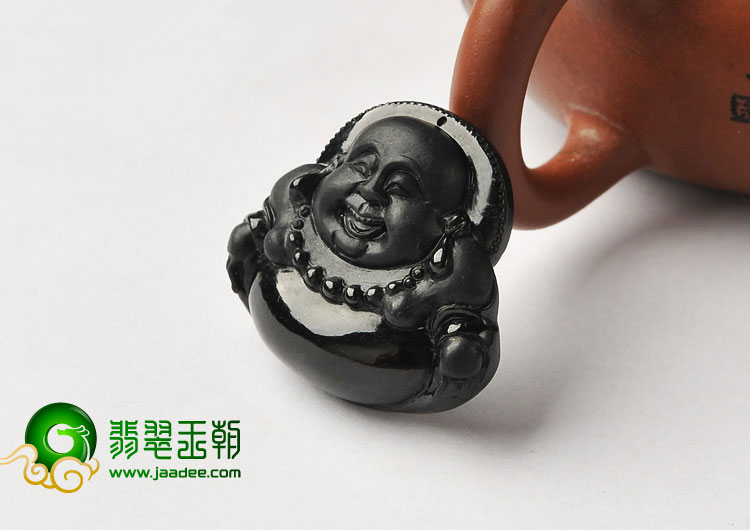 首页 >> 细糯种墨翠缅甸翡翠A货玉佛挂件