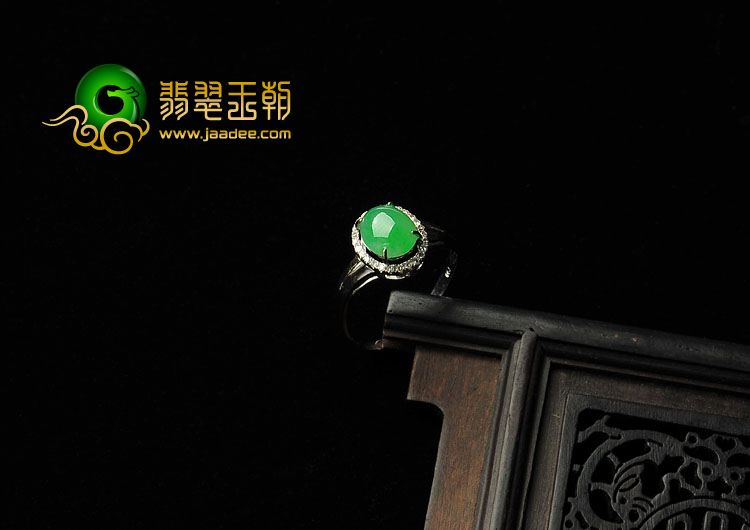 冰种翠色缅甸翡翠A货镶白金戒指(真钻)