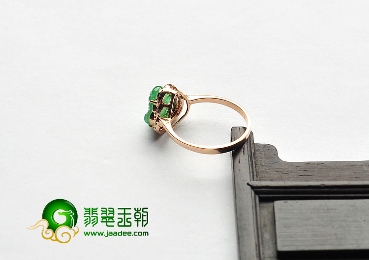 首页 >> 冰种翠色缅甸翡翠A货镶玫瑰金玉佛戒指(真钻)