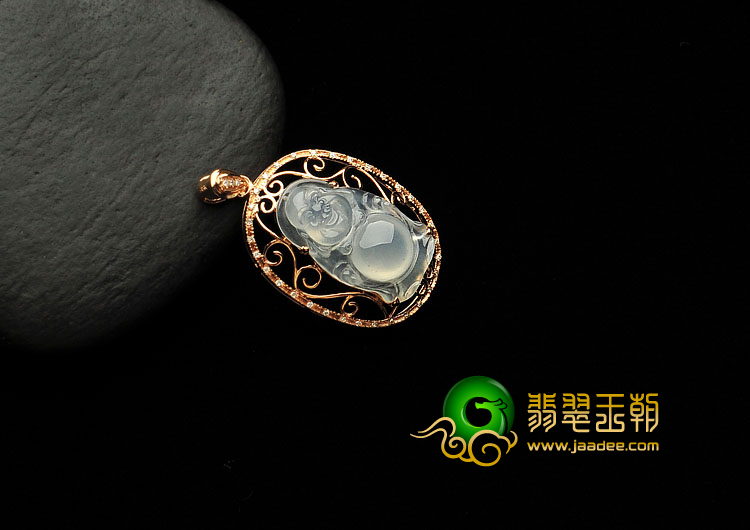 首页 >> 冰种无色缅甸翡翠A货镶玫瑰金站佛胸坠(真钻)