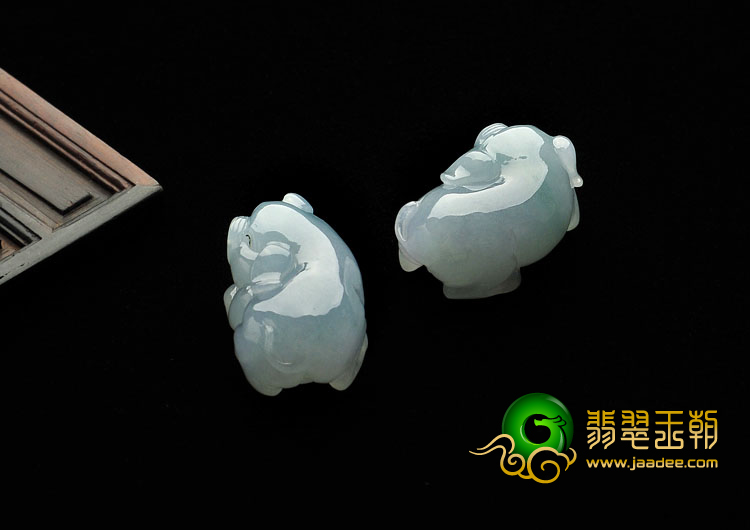 首页 >> 糯冰种晴水缅甸翡翠A货福猪挂件(一对)