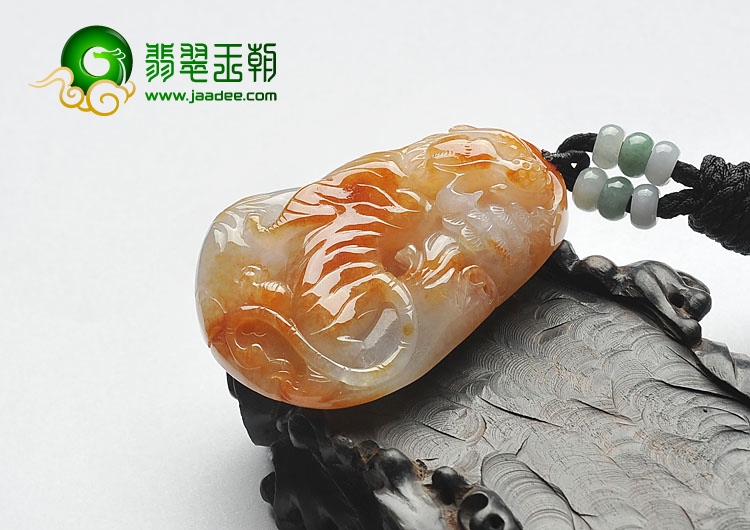 首页 >> 糯冰种红黄翡缅甸翡翠A货虎虎生威挂件