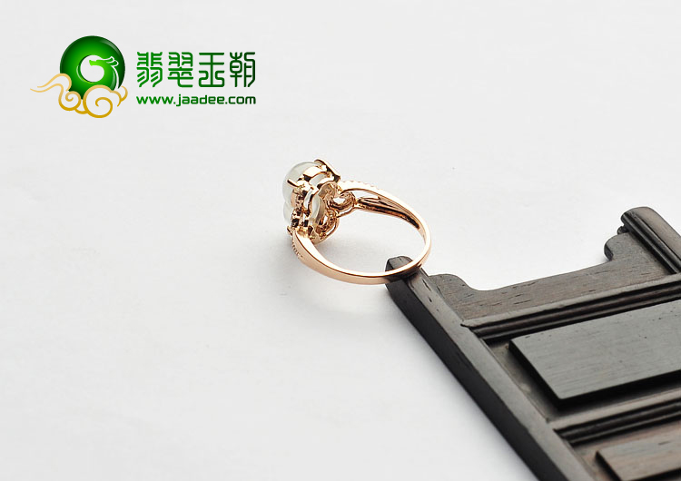 冰玻种无色缅甸翡翠A货镶玫瑰金葫芦戒指(真钻)