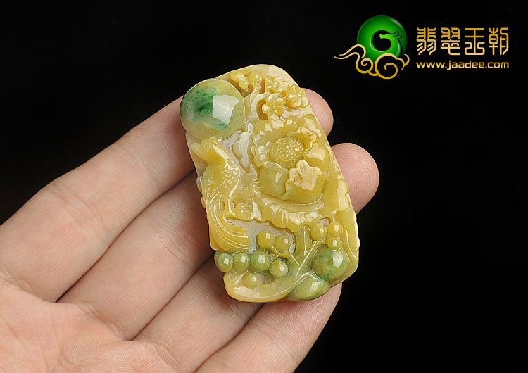 首页 >> 糯冰种黄加绿缅甸翡翠A货花开富贵挂件