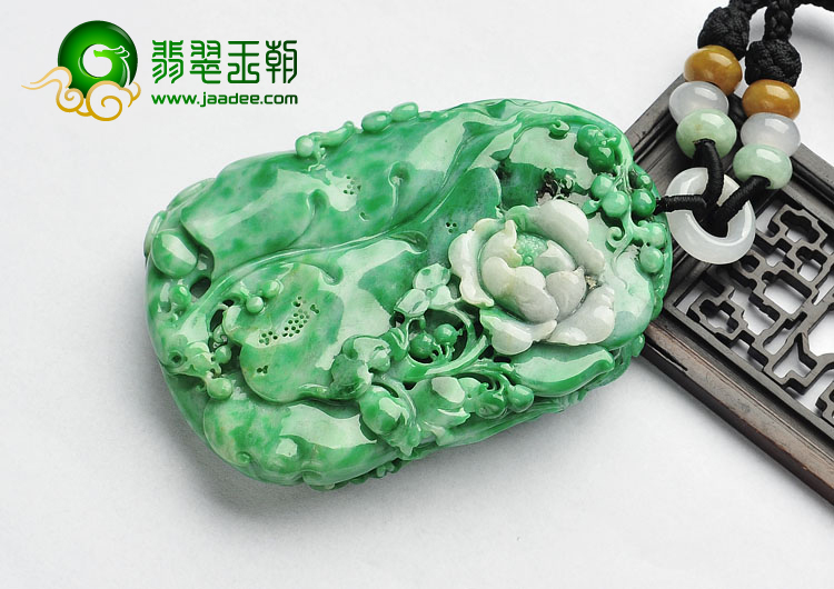 首页 >> 糯冰种翠色缅甸翡翠A货花开富贵挂件