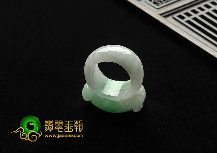 糯冰种翠色缅甸翡翠A货福在眼前指环