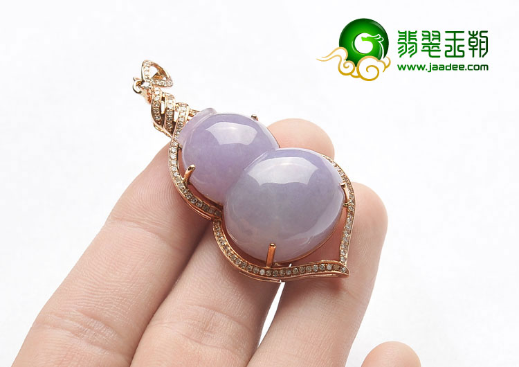 糯冰种紫罗兰缅甸翡翠A货镶玫瑰金葫芦胸坠(真钻)