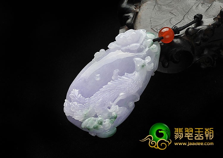 首页 >> 糯冰种春带彩缅甸翡翠A货凤戏牡丹挂件