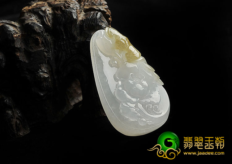 冰种略带褐黄翡缅甸翡翠A货福从天降挂件