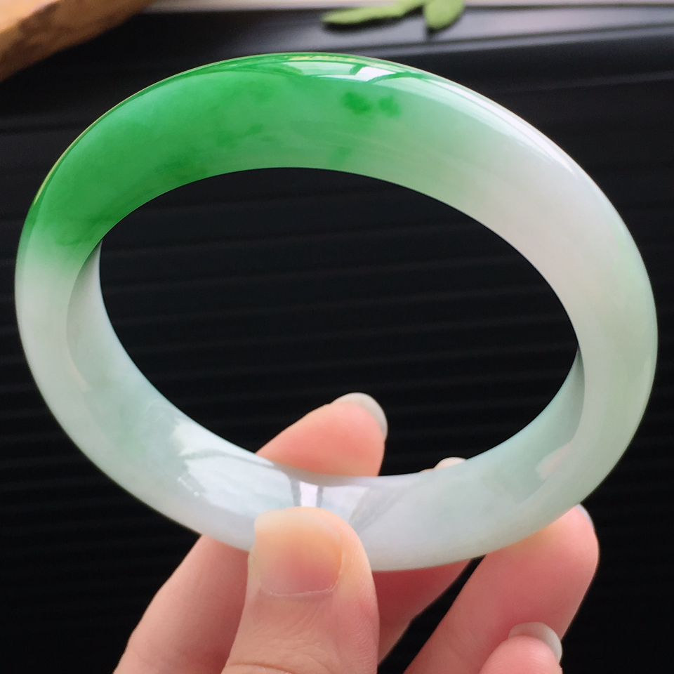 首页 >> 天然翡翠细糯种飘阳绿宽边手镯(57.9mm)