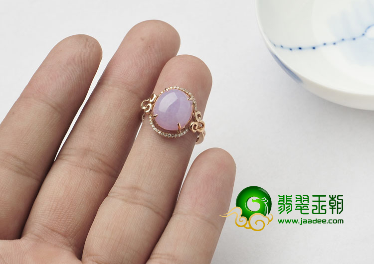 首页 >> 糯冰种紫罗兰缅甸翡翠A货镶玫瑰金戒指(真钻)