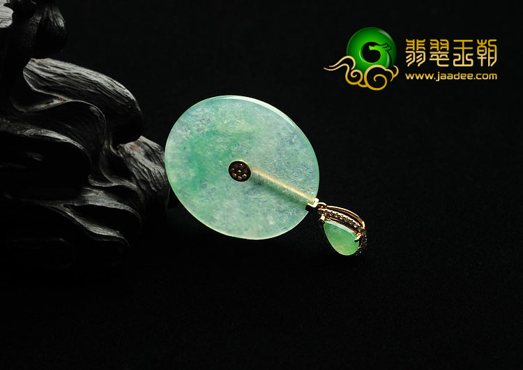 首页 >> 糯冰种绿晴水缅甸翡翠A货镶玫瑰金平安扣胸坠(真钻)