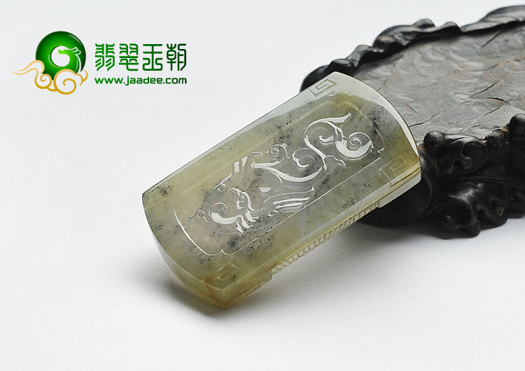 首页 >> 冰种黄翡墨色缅甸翡翠A货仿古龙牌挂件