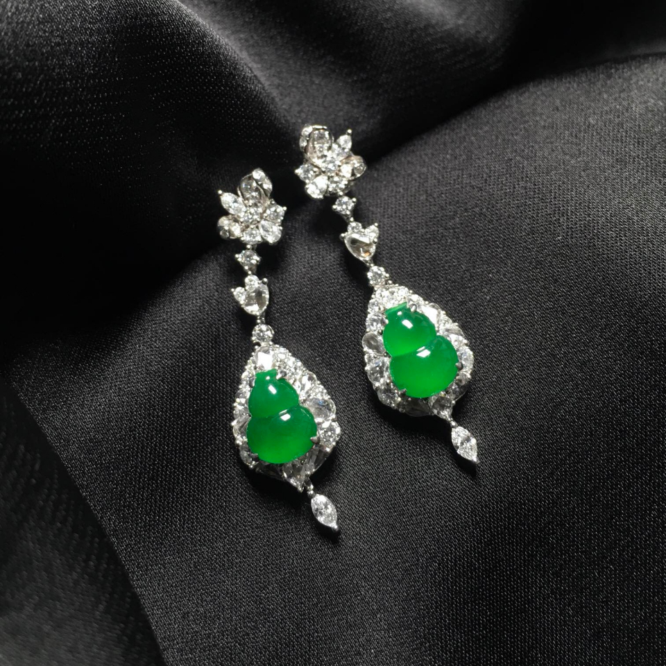 首页 >> 镶18K金钻石冰种满绿葫芦耳坠