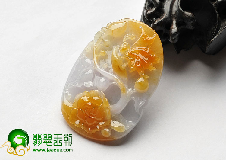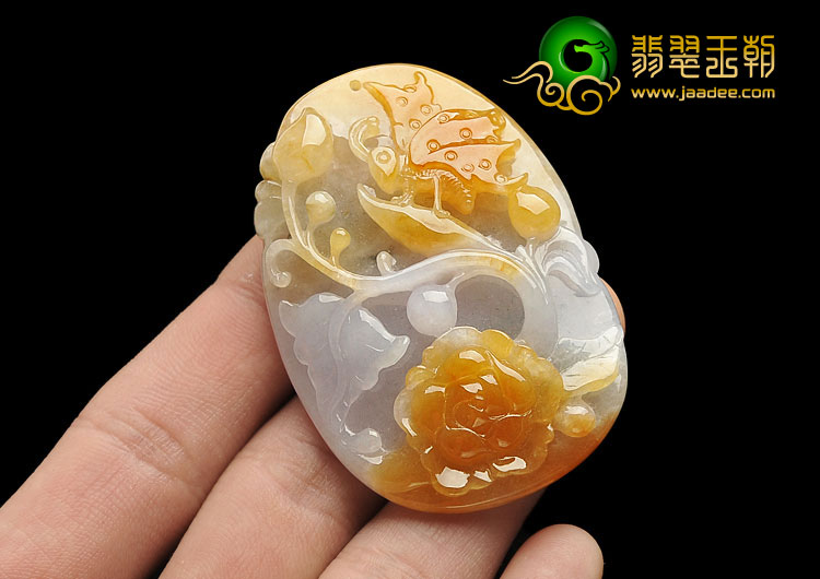 首页 >> 糯冰种褐黄翡飘花缅甸翡翠A货蝶恋花挂件