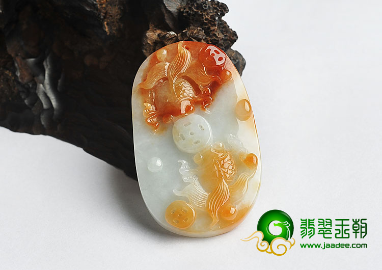 首页 >> 糯冰种红黄翡缅甸翡翠A货金玉满堂挂件