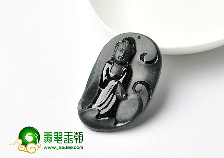 首页 >> 冰玻种墨翠缅甸翡翠A货站观音挂件