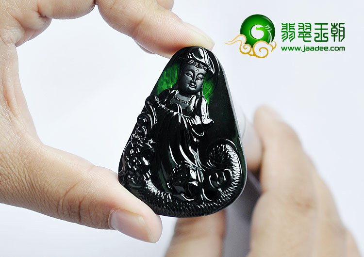 首页 >> 糯冰种墨翠缅甸翡翠A货站观音挂件
