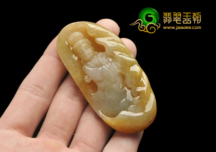 首页 >> 糯冰种黄翡略飘花缅甸翡翠A货站观音挂件