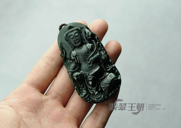 【必要说明】:冰种莹润透水,闪烁的荧光熠熠生辉;墨翠即指绿得呈黑,黑里又透着绿颜色的翡翠,有镇惊保平安之效。玉型厚装饱满,十分费料;雕刻精湛,栩栩如生,抛光出水效果极佳;观世音菩萨利益众生,救苦救难,慈心普渡,身佩观音,于生死苦海,为作船筏,于无明长夜,为作明灯。