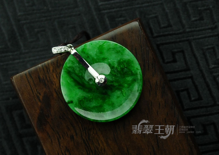 首页 >> 糯冰种正阳绿满绿镶白金缅甸翡翠平安扣挂件