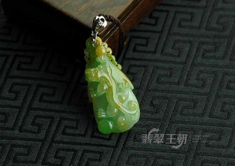糯冰种黄加绿缅甸翡翠草龙挂件