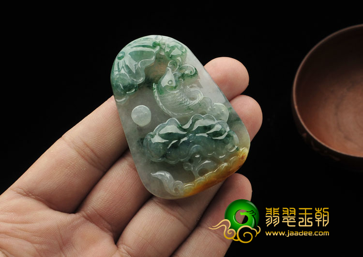 首页 >> 糯冰种飘花带褐黄翡缅甸翡翠A货年年有余挂件