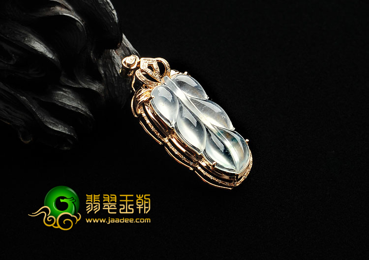 冰玻种略飘花缅甸翡翠A货镶玫瑰金金枝玉叶胸坠(真钻)