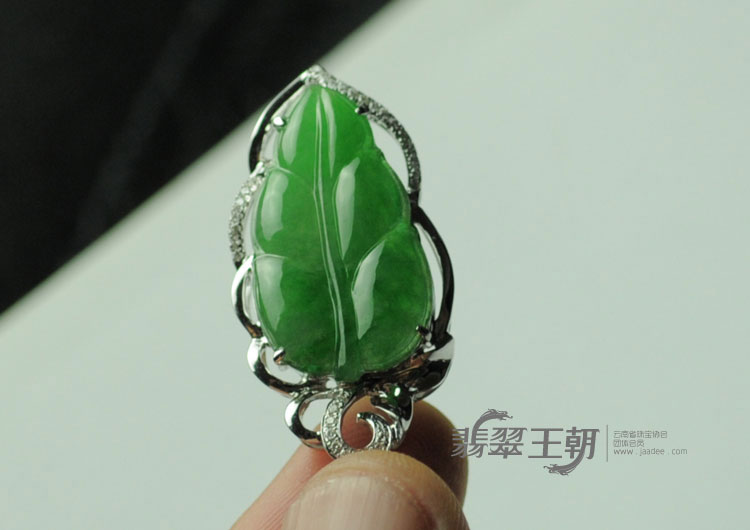 【必要说明】:糯冰种质地细腻,晶莹水润如灵山泉水一般通透、纯净;玉身潋滟的阳绿色泽如荡漾的涟漪,充满韵致;玉型圆润饱满、用料厚实、十分高档大气;全镶钻包边设计的款式雍容华贵,但又精致细腻;翠绿的树叶,代表着勃勃生机,意喻生命之树长青;姑娘佩之,永远青春美丽,老人佩之,精神饱满,更有活力。