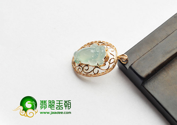 首页 >> (超值推荐)冰种晴水缅甸翡翠A货镶玫瑰金金蟾胸坠(真钻)