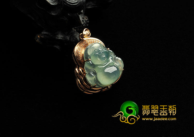 首页 >> 冰玻种飘花缅甸翡翠A货镶玫瑰金玉佛胸坠(真钻)