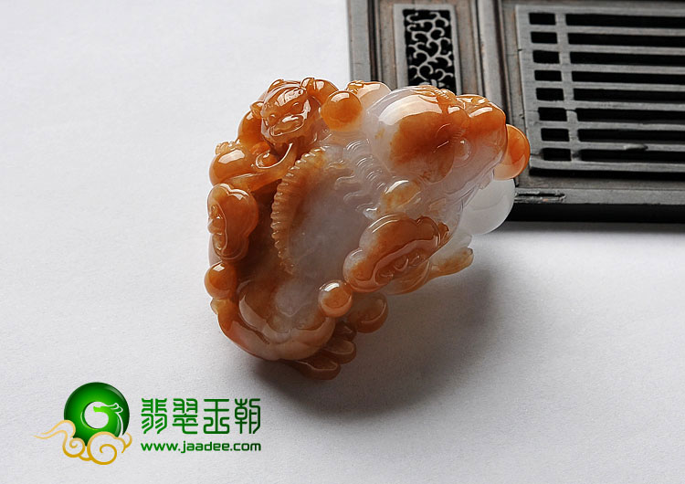 首页 >> 糯冰种红黄翡缅甸翡翠A货招财进宝挂件