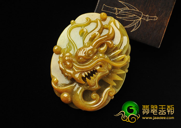 糯冰种褐黄翡缅甸翡翠A货龙牌挂件