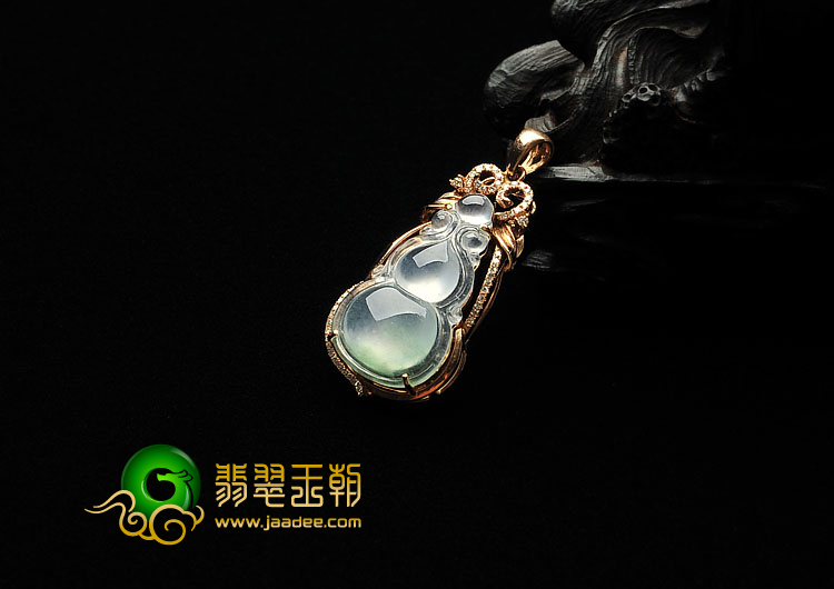 (超值推荐)冰玻种略飘花缅甸翡翠A货镶玫瑰金葫芦胸坠(真钻)