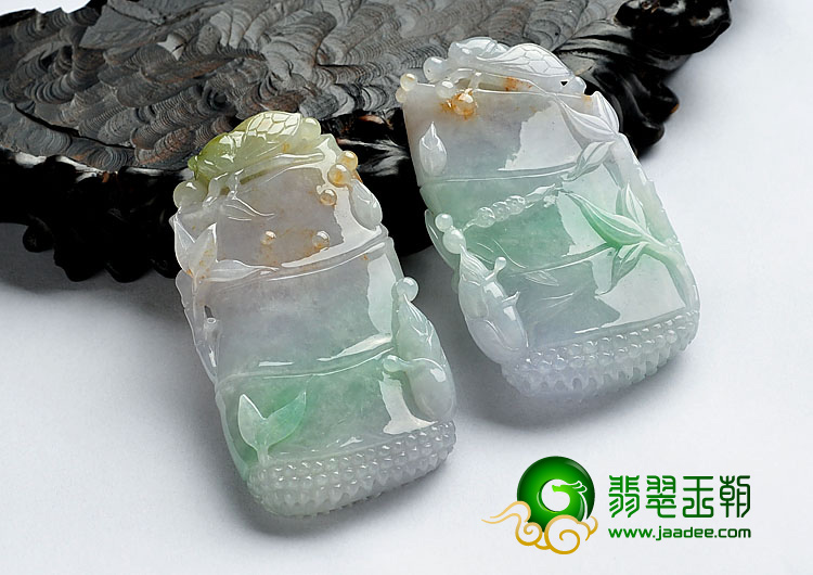 首页 >> 糯冰种三彩缅甸翡翠A货节节高挂件(一对)