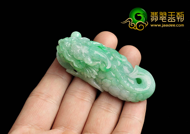 首页 >> 糯冰种豆色缅甸翡翠A货龙头鱼挂件