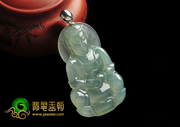 首页 >> 冰种晴水缅甸翡翠A货镶金扣观音挂件