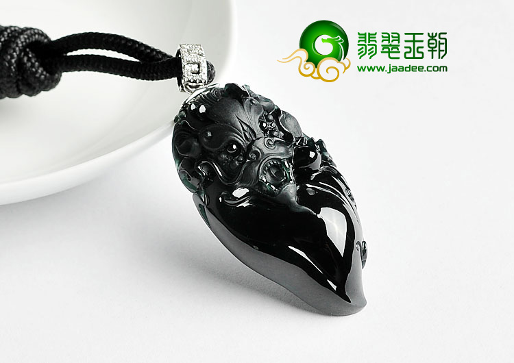 首页 >> 冰玻种墨翠缅甸翡翠A货龙头挂件