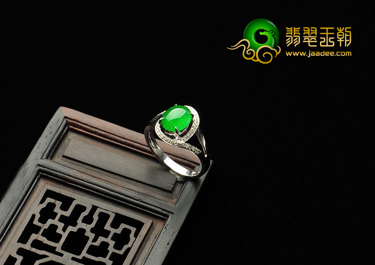 冰种蓝绿缅甸翡翠A货镶白金戒指(真钻)