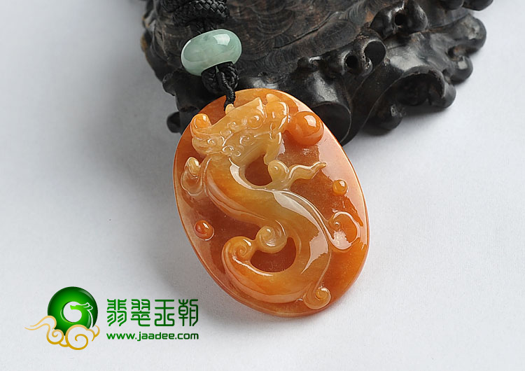 首页 >> 糯冰种红黄翡缅甸翡翠A货仿古龙凤挂件