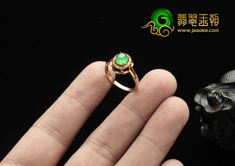 首页 >> 冰种绿晴水缅甸翡翠A货镶玫瑰金戒指(真钻)