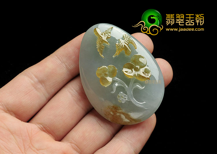 首页 >> 冰种褐黄翡晴水缅甸翡翠A货花开富贵挂件