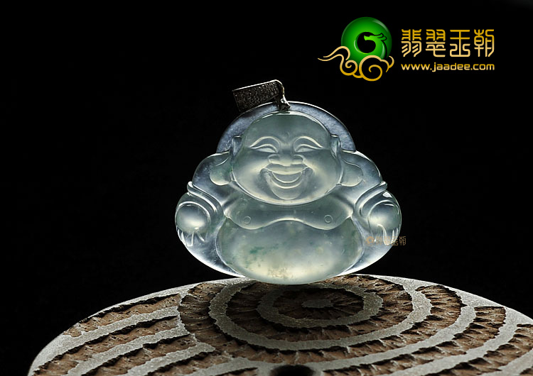首页 >> 冰玻种略飘花缅甸翡翠A货镶金扣玉佛挂件
