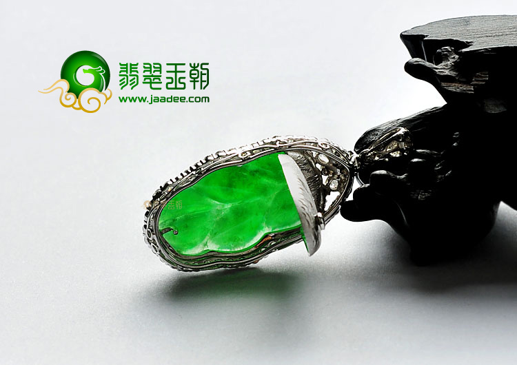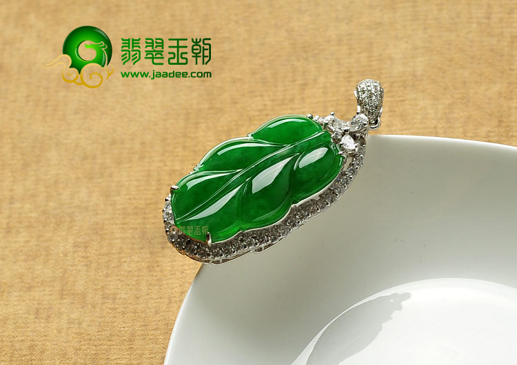 首页 >> 冰种深绿缅甸翡翠A货镶白金金枝玉叶胸坠(真钻)