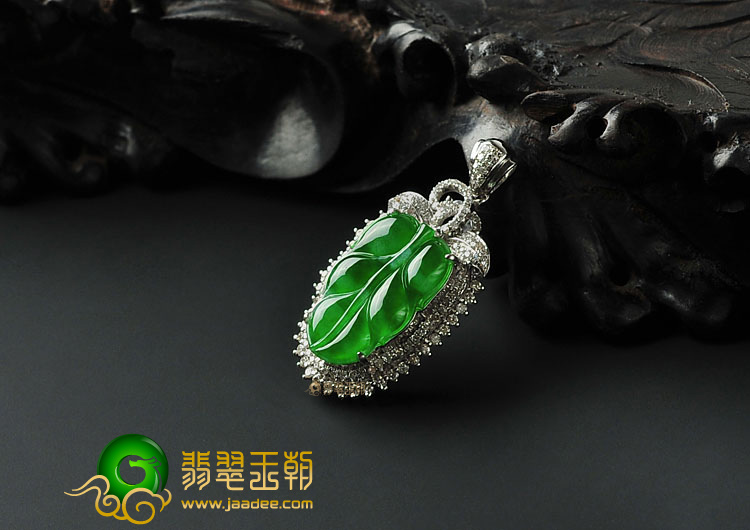 冰种翠色缅甸翡翠A货镶白金金枝玉叶胸坠(真钻)