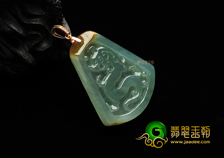 冰种晴水带褐黄翡缅甸翡翠A货龙牌挂件