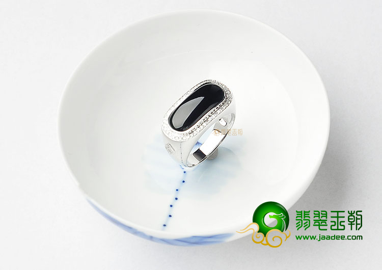 首页 >> 冰玻种墨翠缅甸翡翠A货镶白金戒指(真钻)