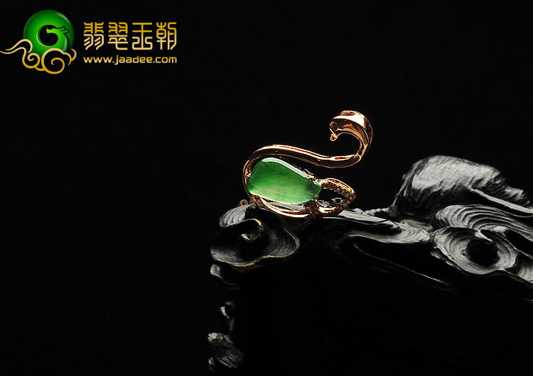 冰种翠色缅甸翡翠A货镶玫瑰金天鹅胸坠(真钻)