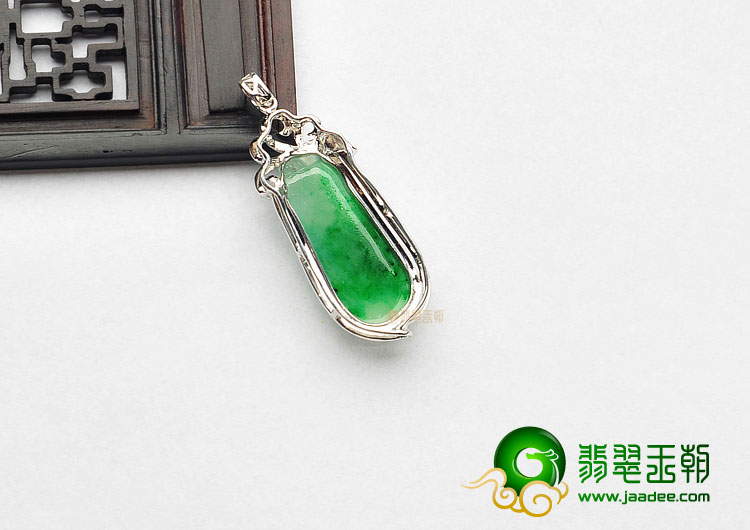 冰种飘翠缅甸翡翠A货镶白金福瓜胸坠(真钻)